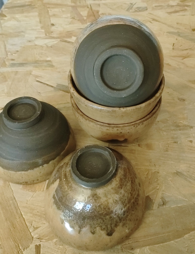 Émail : Beige sable avec coulures sur terre brute, intérieur émaillé