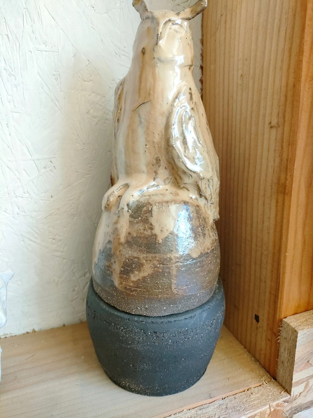 Le Veilleur – grande boîte en céramique avec hibou sculpté – grès tourné et modelé – pièce unique